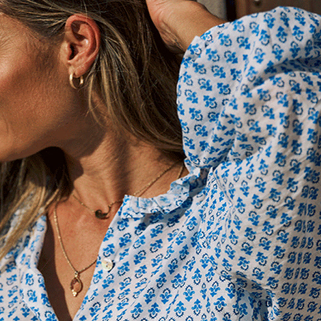 With its ruffle detailing, long sleeves and easy silhouette the Olbia is innately relaxed and wearable