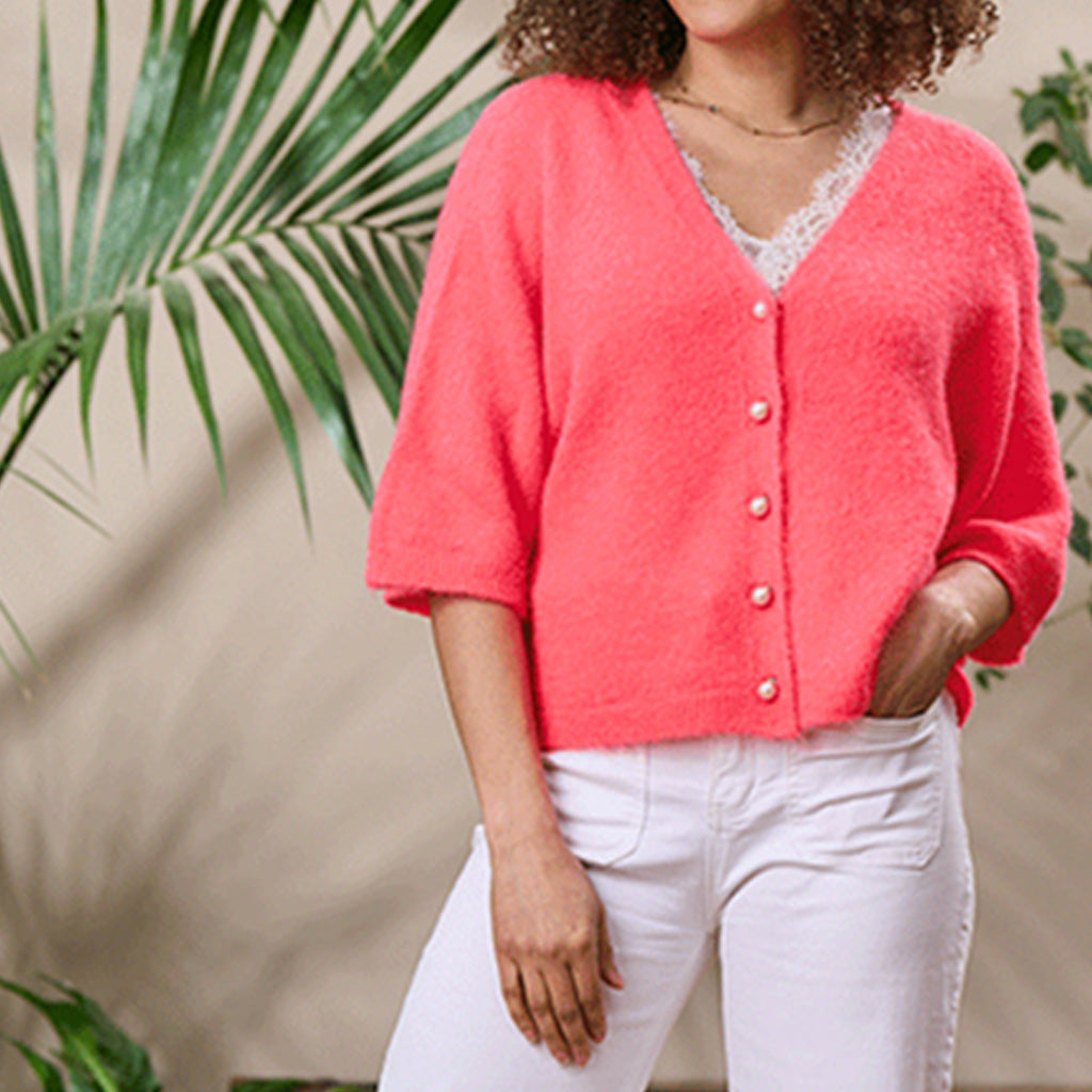 Made from luxuriously soft alpaca, the Pearl cardigan blends elegance with everyday ease. Its short sleeves and delicate buttons create a stylish, feminine finish. Perfect for layering or wearing on its own