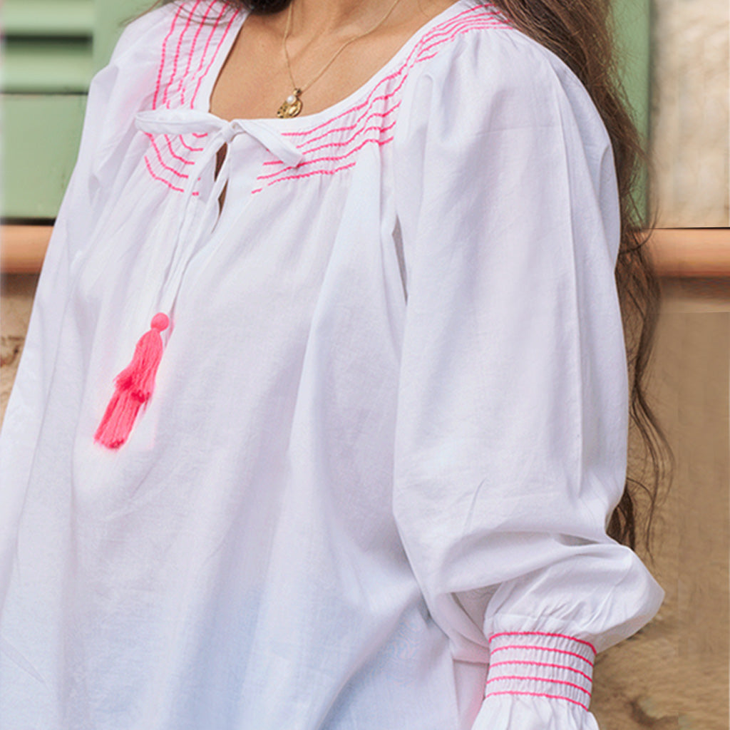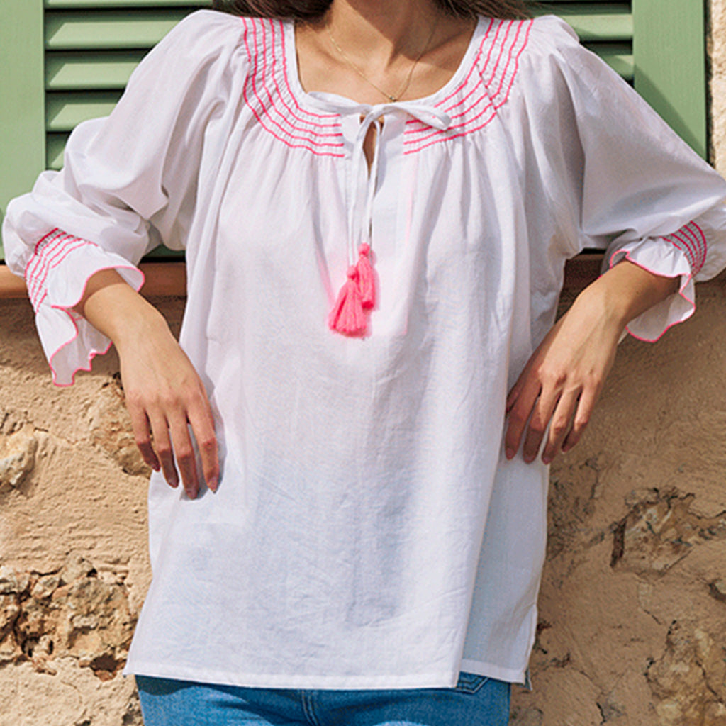 top blends vibrant detail with everyday ease. Lightweight and versatile, it’s designed for relaxed, polished summer outfits