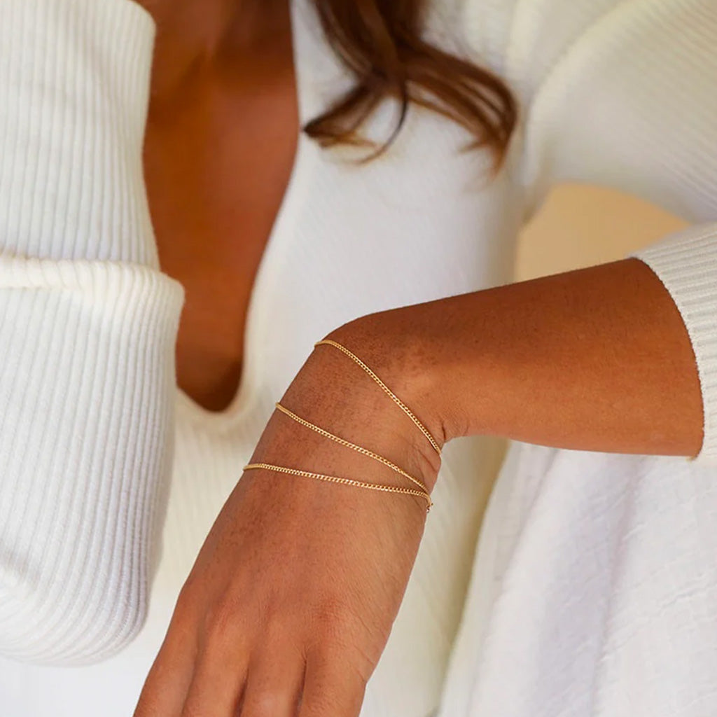 This versatile two-in-one chain is designed to be worn as a necklace or wrapped threes times around the wrist as a bracelet