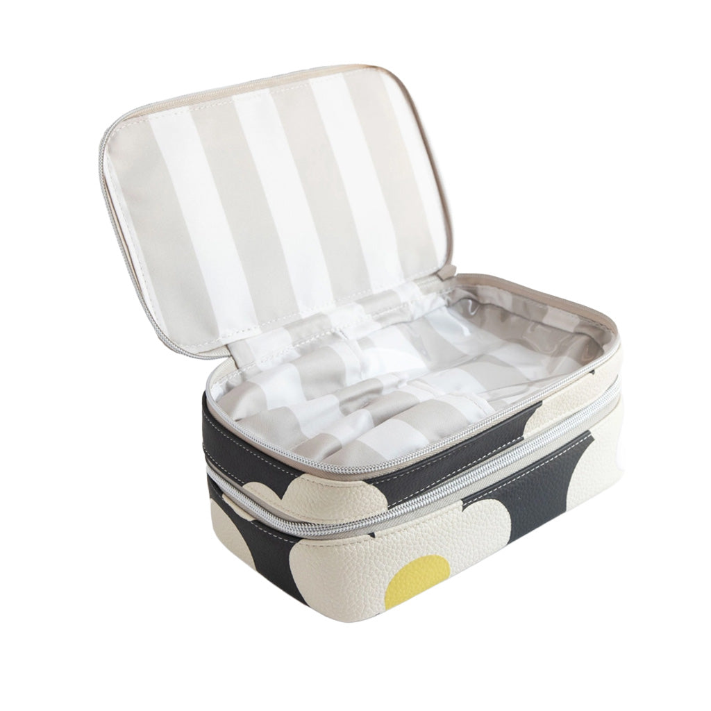 This fabulous make up organiser, in a multi flower print design, features two sections to store all those essentials in, brush dividers and a handy wipe clean lining