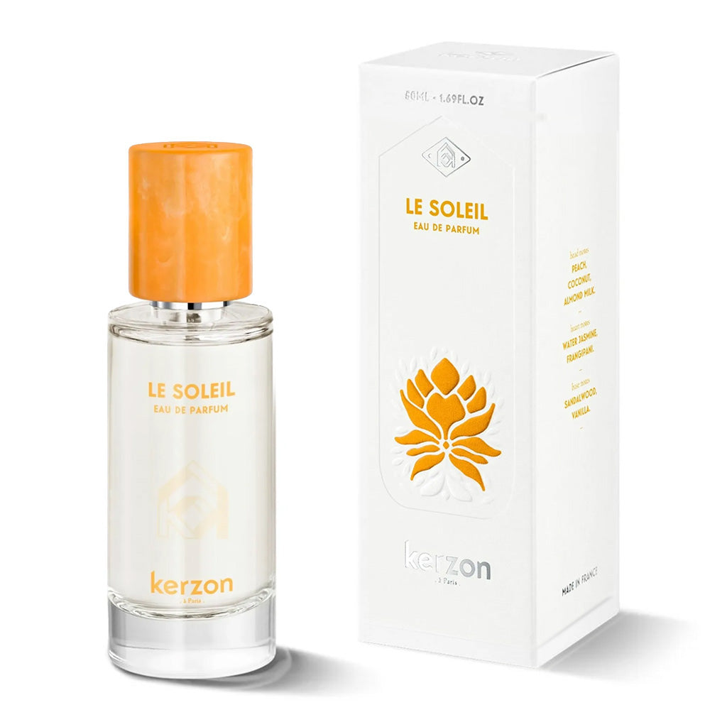 Created by master perfumers in Grasse, using only high quality essential and absolute oils, the captivating fragrances of KERZON are 100% made in France. The recyclable glass bottle is refillable whilst the colour of the marbled cap, engraved with the house logo, reflects the spirit of the individual fragrance