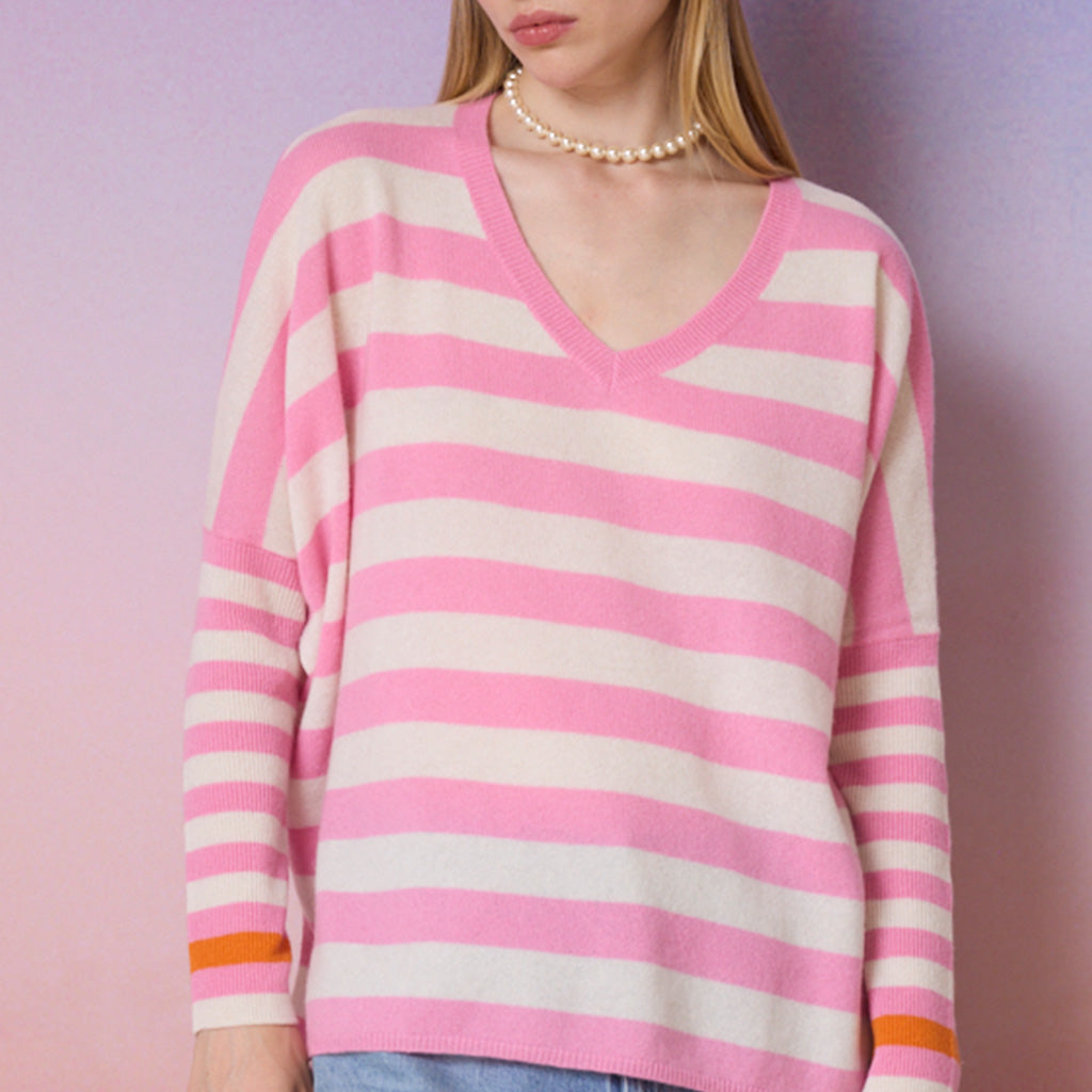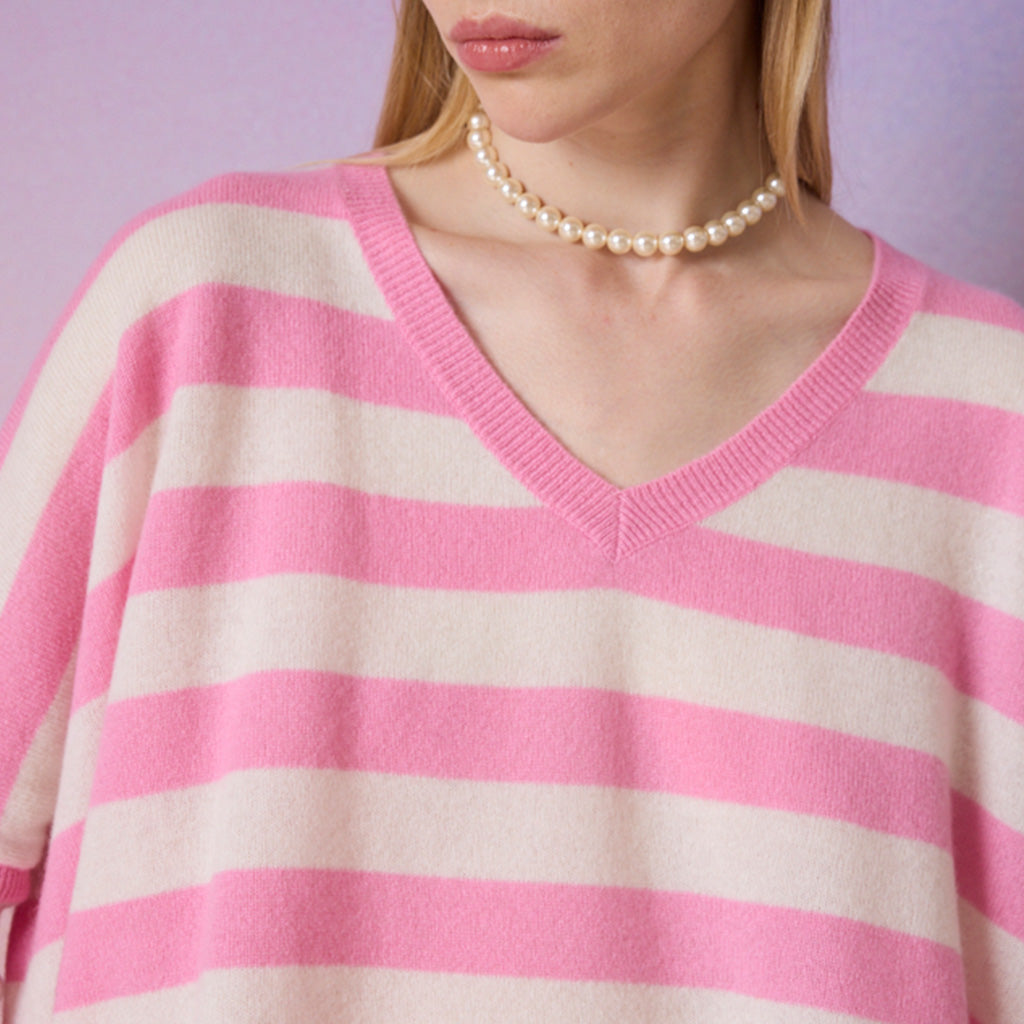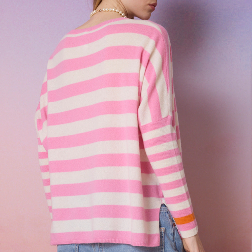 JANET sweater, in pink and cream stripe