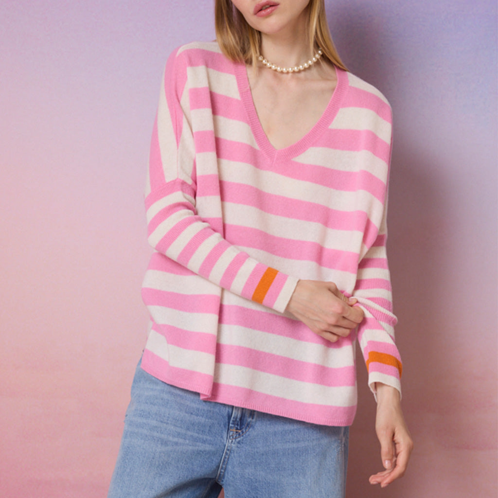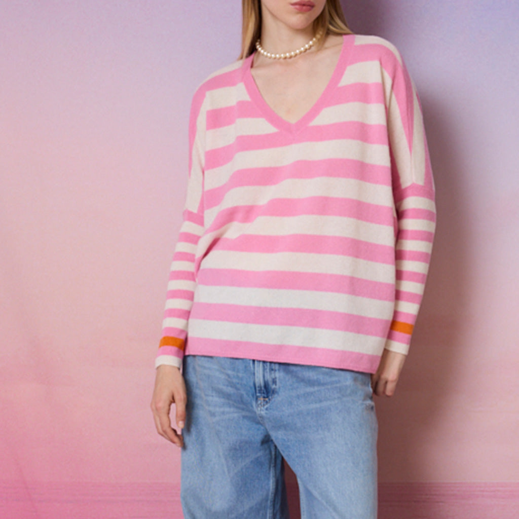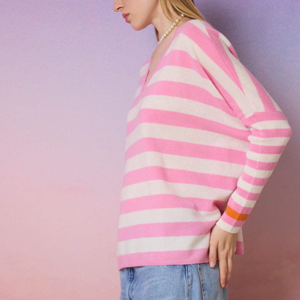 JANET sweater, in pink and cream stripe