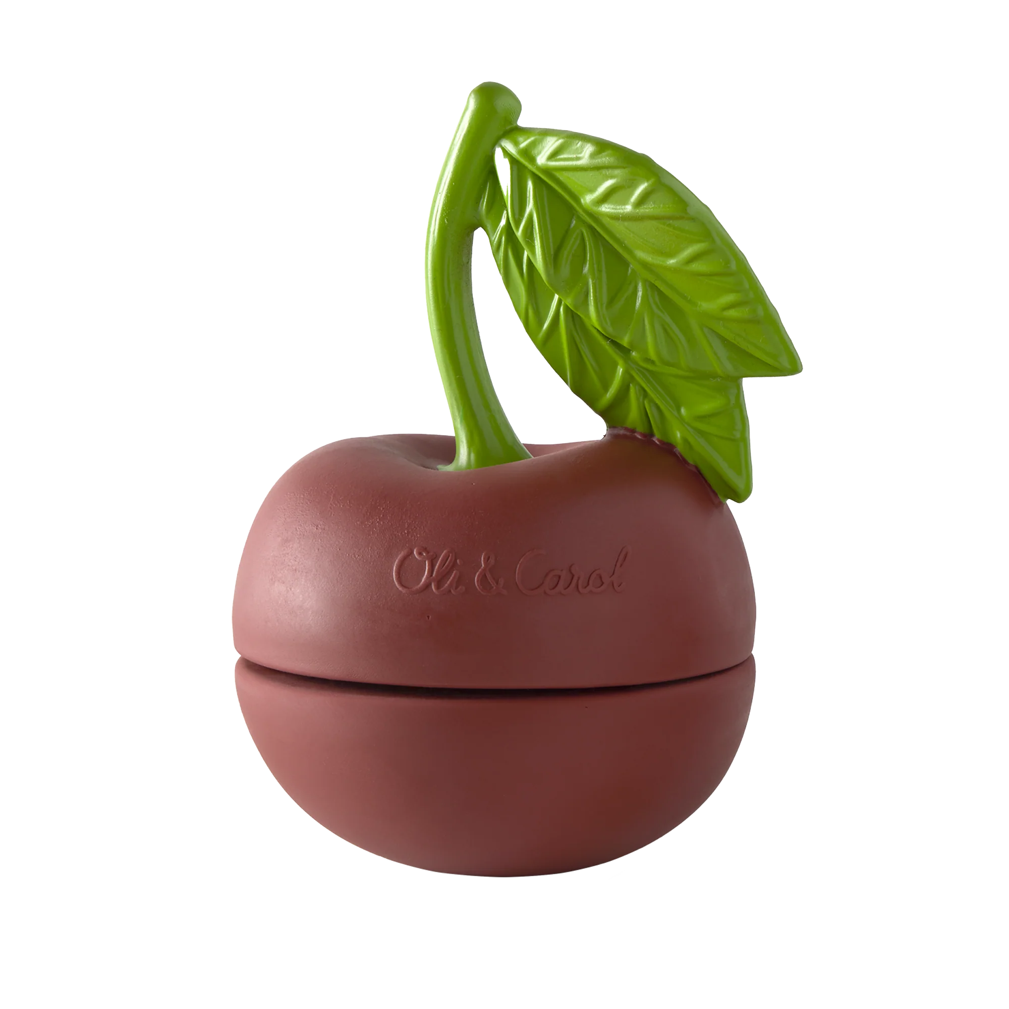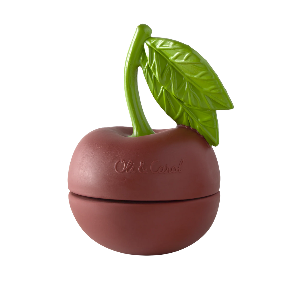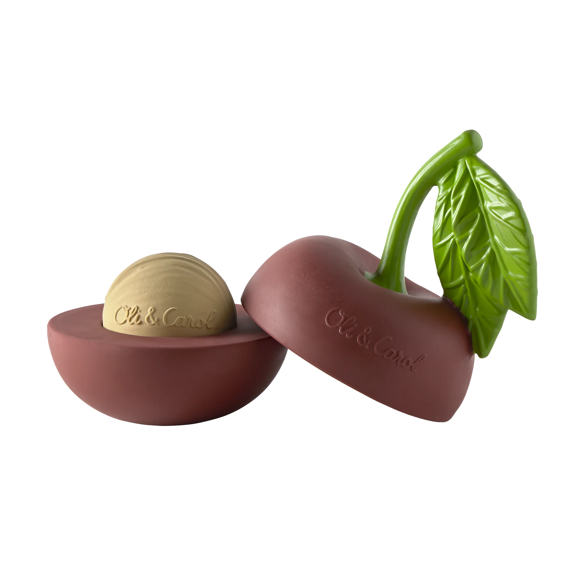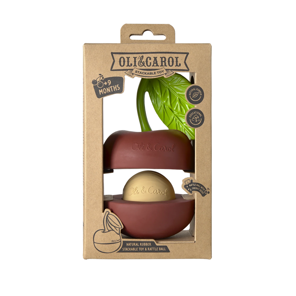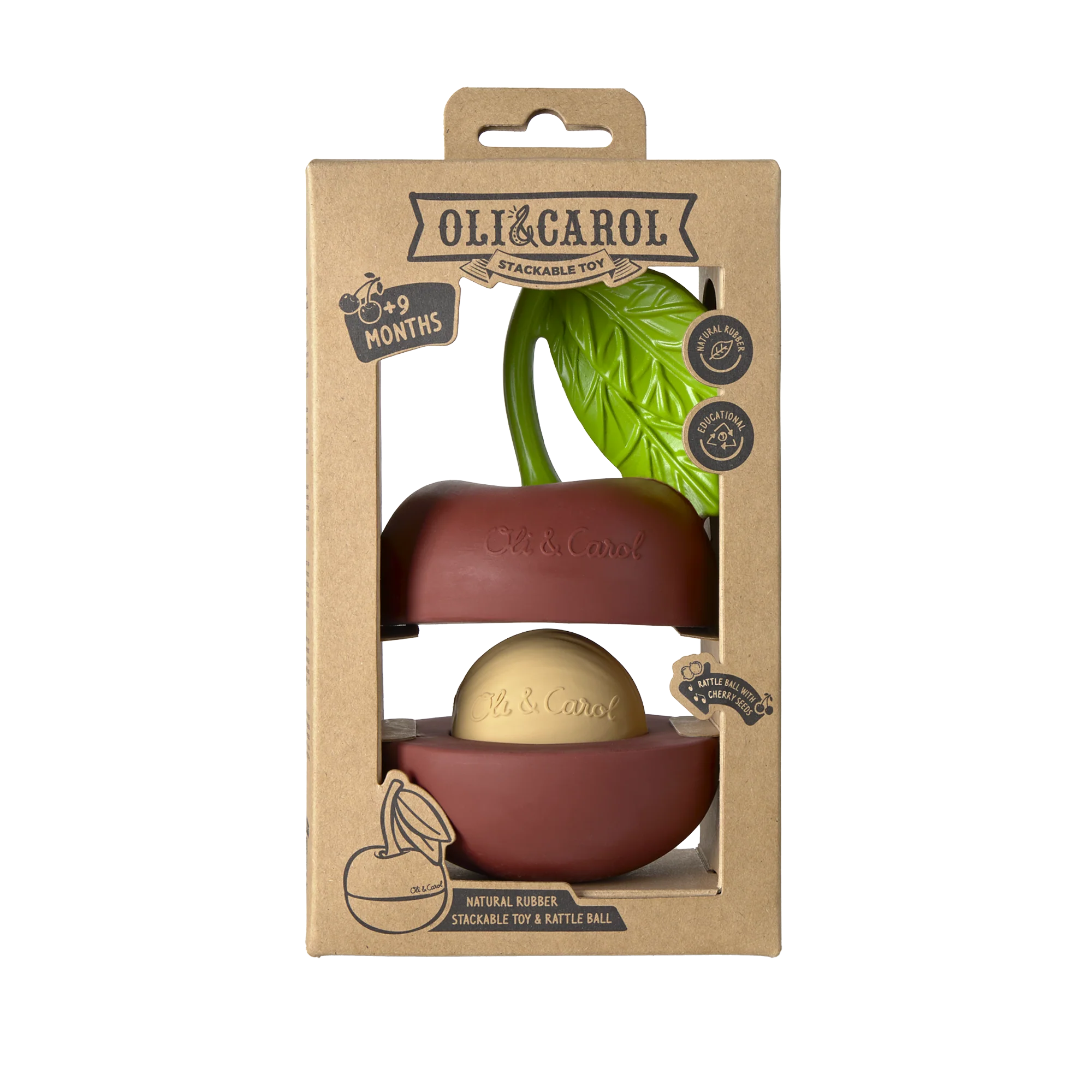 Stack and bounce – The MERY CHERRY stackable toy and rattle ball is an eco-friendly stacking toy with a rattle ball inside. Made with 100% natural rubber and up-cycled cherry seeds that produce a gentle, calming sound