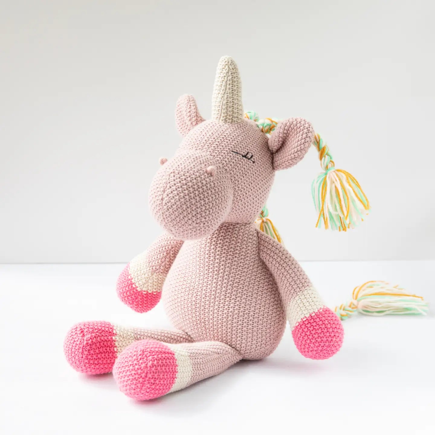 Unicorns make a perfect pairing for little ones and this whimsical fellow is always on the lookout for a soft place to lay his head at nap time!