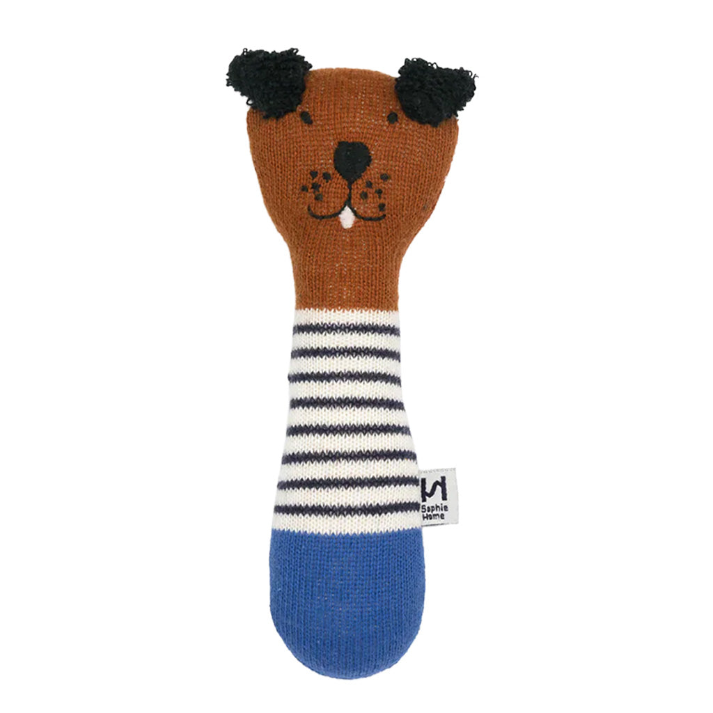 Babies will love this sweet dog rattle. Knitted in the softest cotton it is made with love and care, right down to its hand-embroidered face, which makes every dog slightly different! Babies will love to chew on the ears and as they are CE tested, let them go ahead!