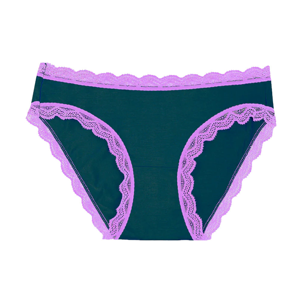 Extra feminine and extra comfortable, the original cloud-soft, breathable knicker in MIDNIGHT, finished with a LAVENDER lace trim and packaged with love in a gift box