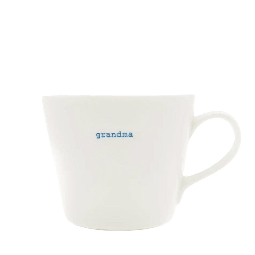 Let them know you're thinking of them as they indulge in their favourite hot beverage by gifting this mug featuring a 'grandma' hand-stamped inscription, in a blue typewriter font