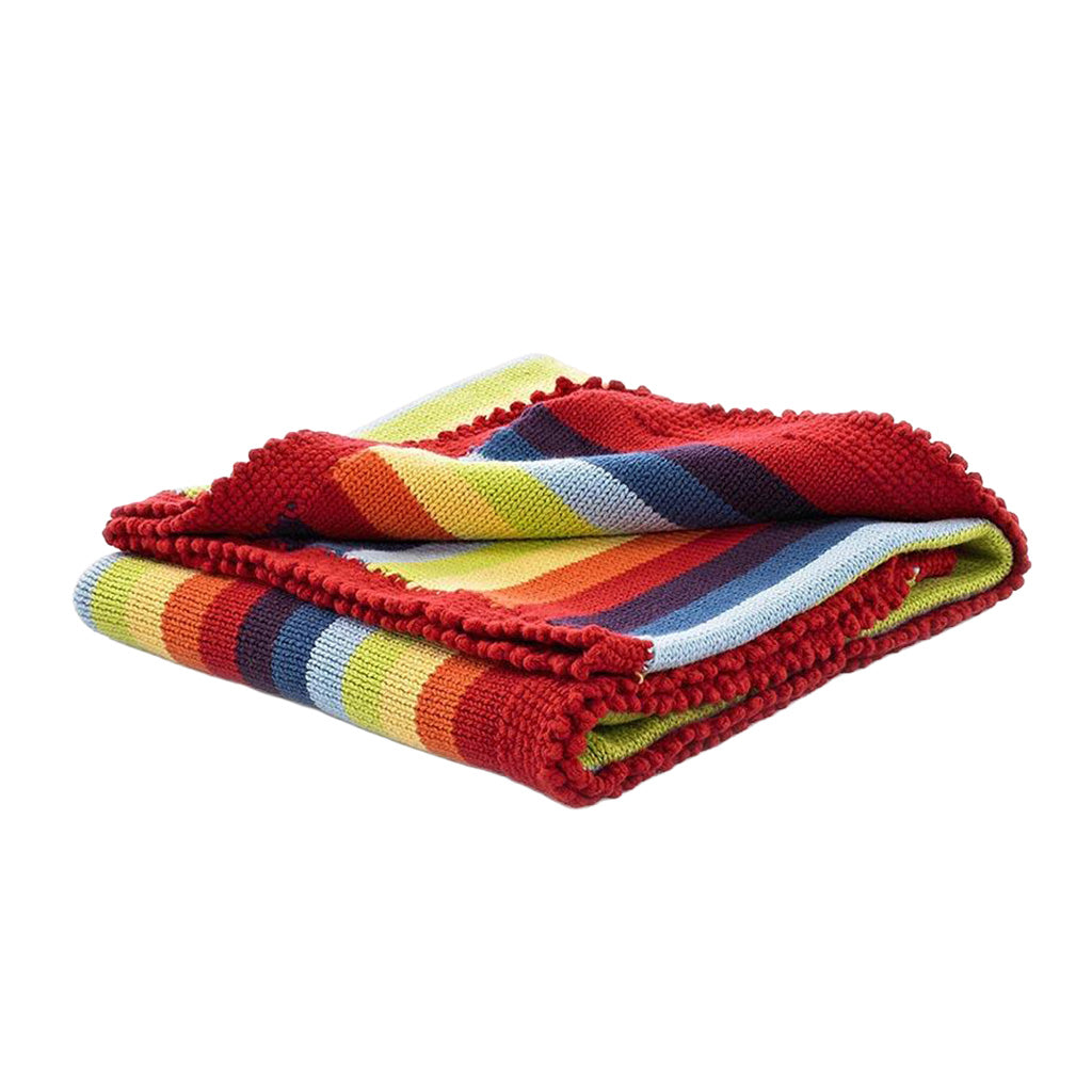 Lovingly handmade with bold stripes of colourful cotton yarn, this heirloom crochet baby blanket features delightful edging. Use it as a swaddle blanket for newborns or a napping blanket for an older baby, it makes for the perfect gift for a rainbow baby!