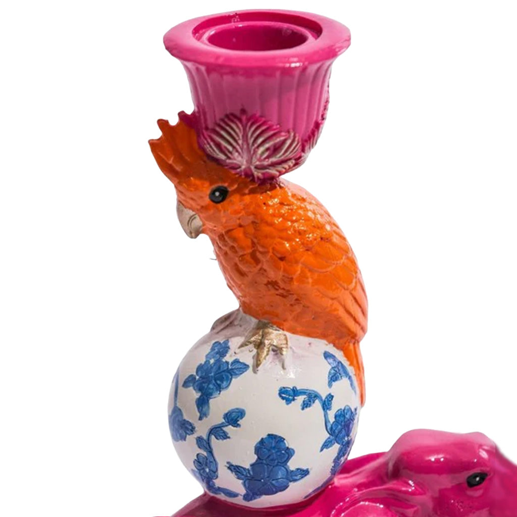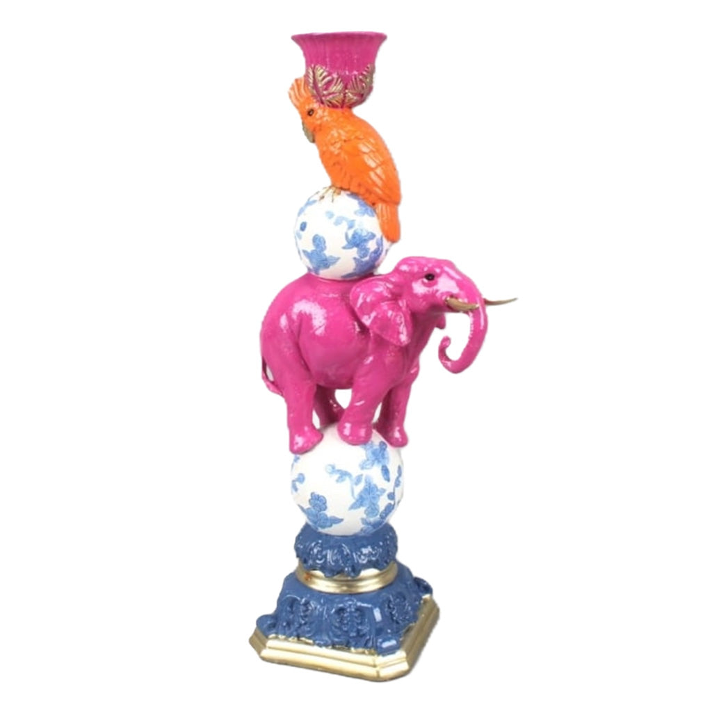 Featuring an orange cockatoo perched on a ball balancing on an elephants back who's poised atop an ornate base, this is a striking decorative piece that will instantly elevate any space
