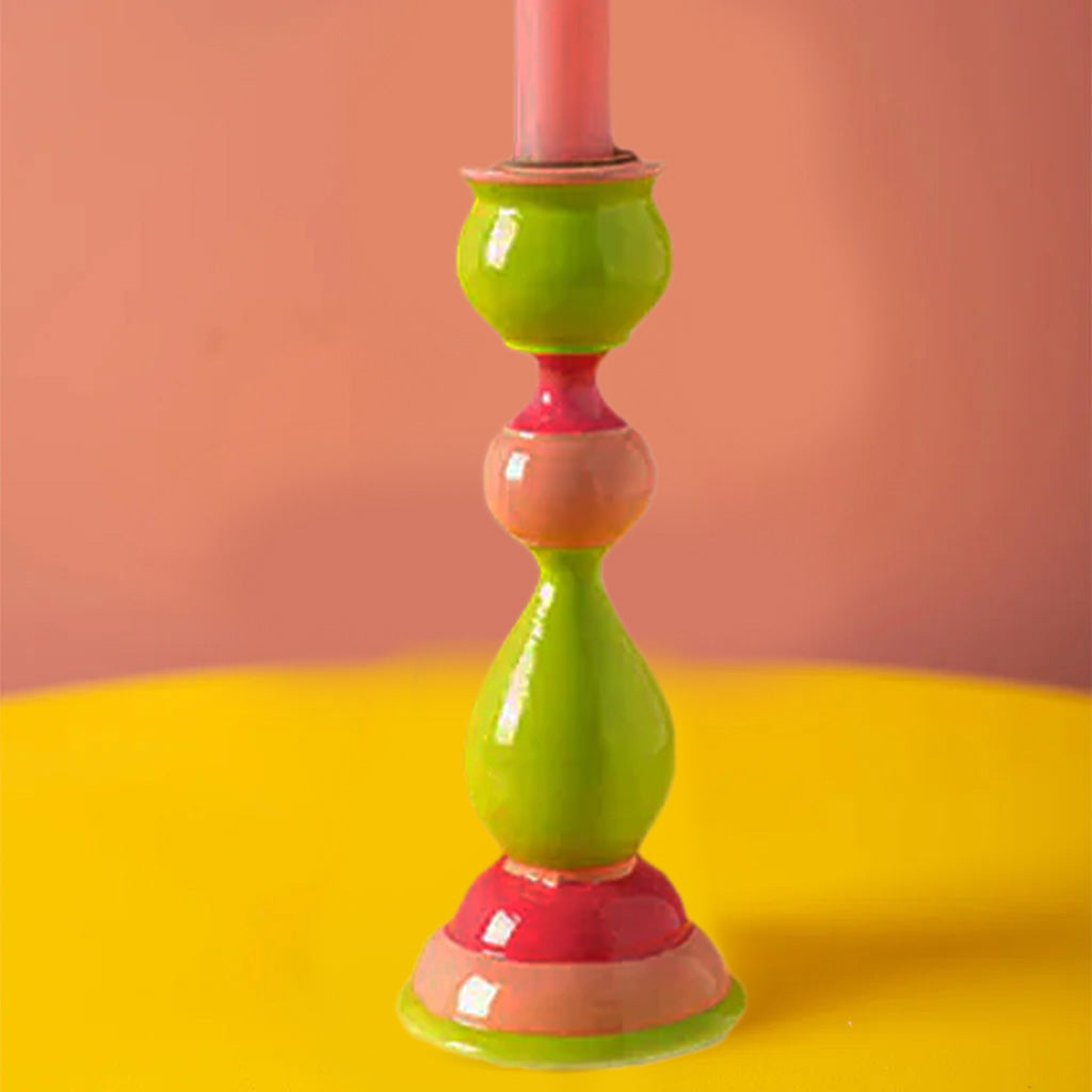PINK & GREEN Wooden Candle Holder is backordered and will ship as soon as it is back in stock.