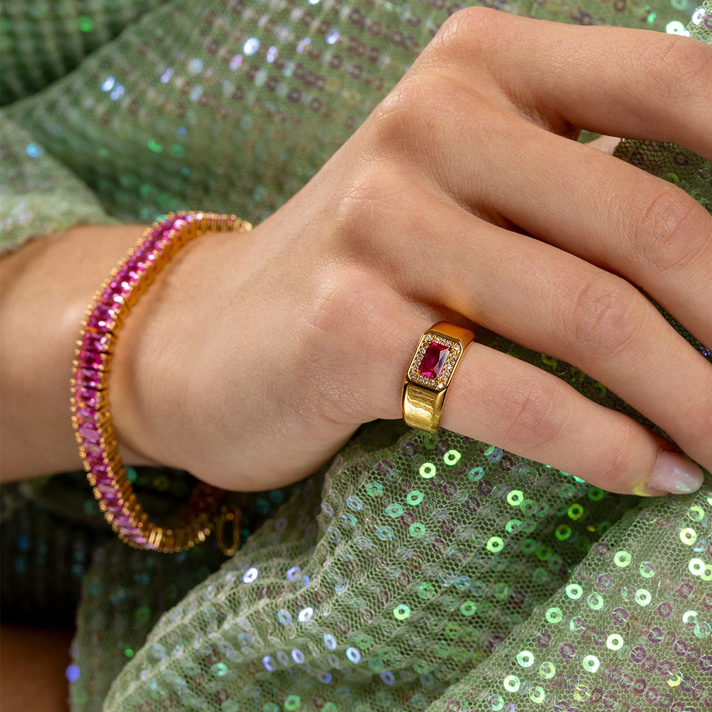 Crafted from 18k gold plated brass and cubic zirconia borders