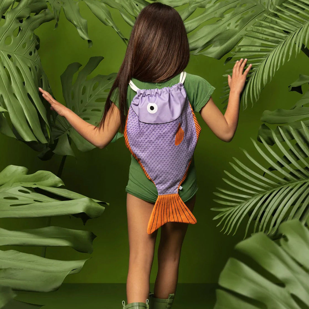 This waterproof, handmade lilac coloured PIRANHA fish backpack will become any kids (or adults) favourite fish-shaped accessory, and makes an ideal bag for school, sports kit or travel