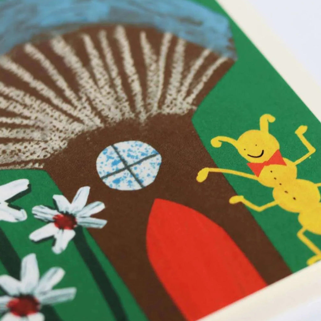 A endearing ant and its snazzy new mushroom house. Perfect for anyone who’s just found a new place to live