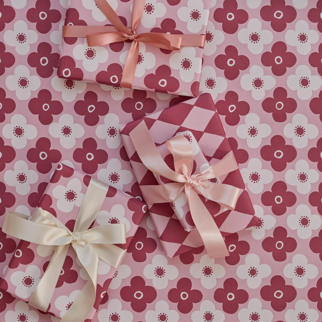 Pink FLOWER gift wrap, printed on fine quality 100gsm paper