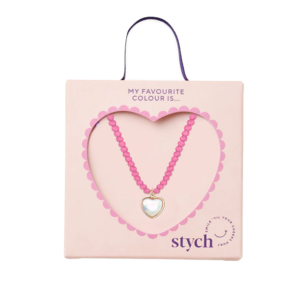 Pearlised heart gem and beads necklace. Collect the different colours, stack and wear!