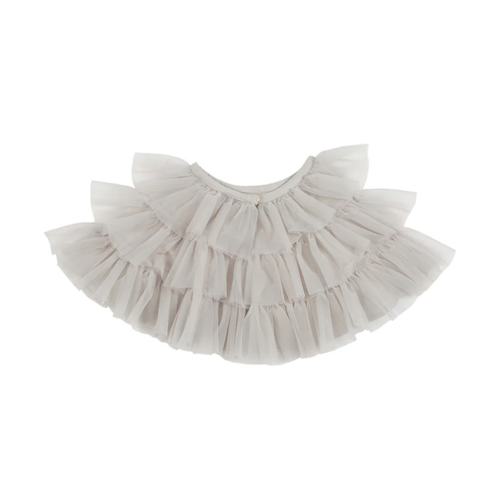 Super cute, pale grey chiffon cape - layers of pretty chiffon frills with a popper fastening