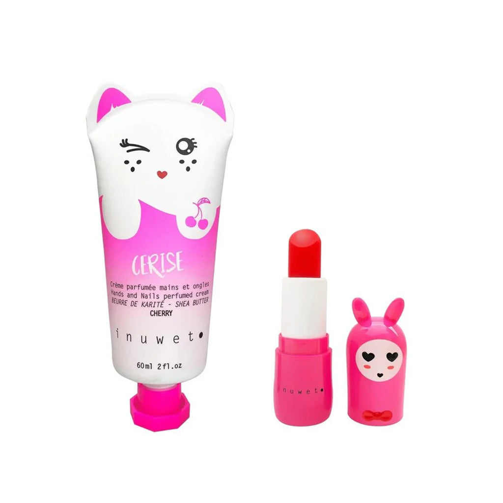 This 'love cherry' gift set includes a nourishing, cherry-scented lip balm and a cherry scented hand cream, in love inspired gift box