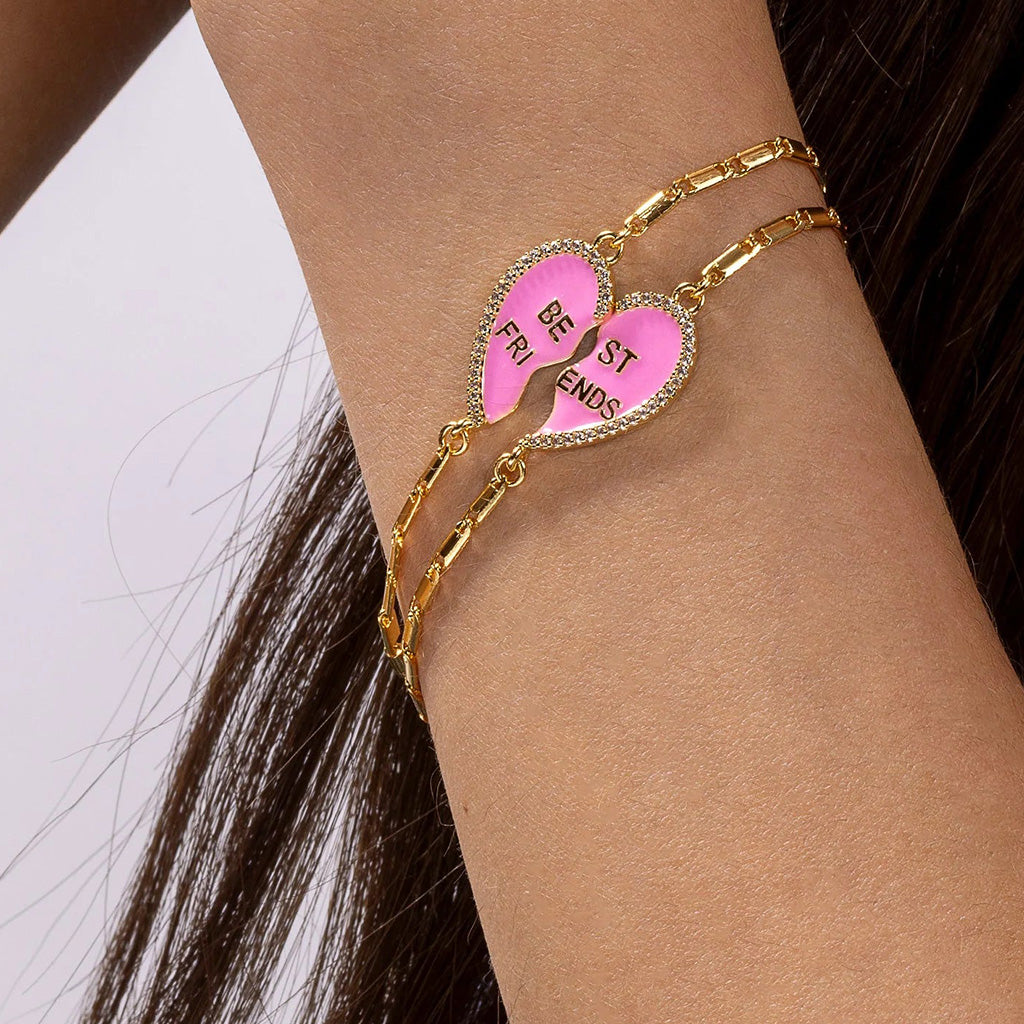 This BEST FRIENDS bracelet in 'candy pink' comes in a set of two, one for you and one for your best friend!