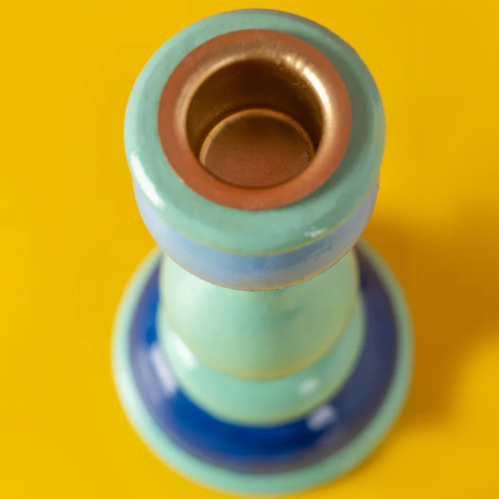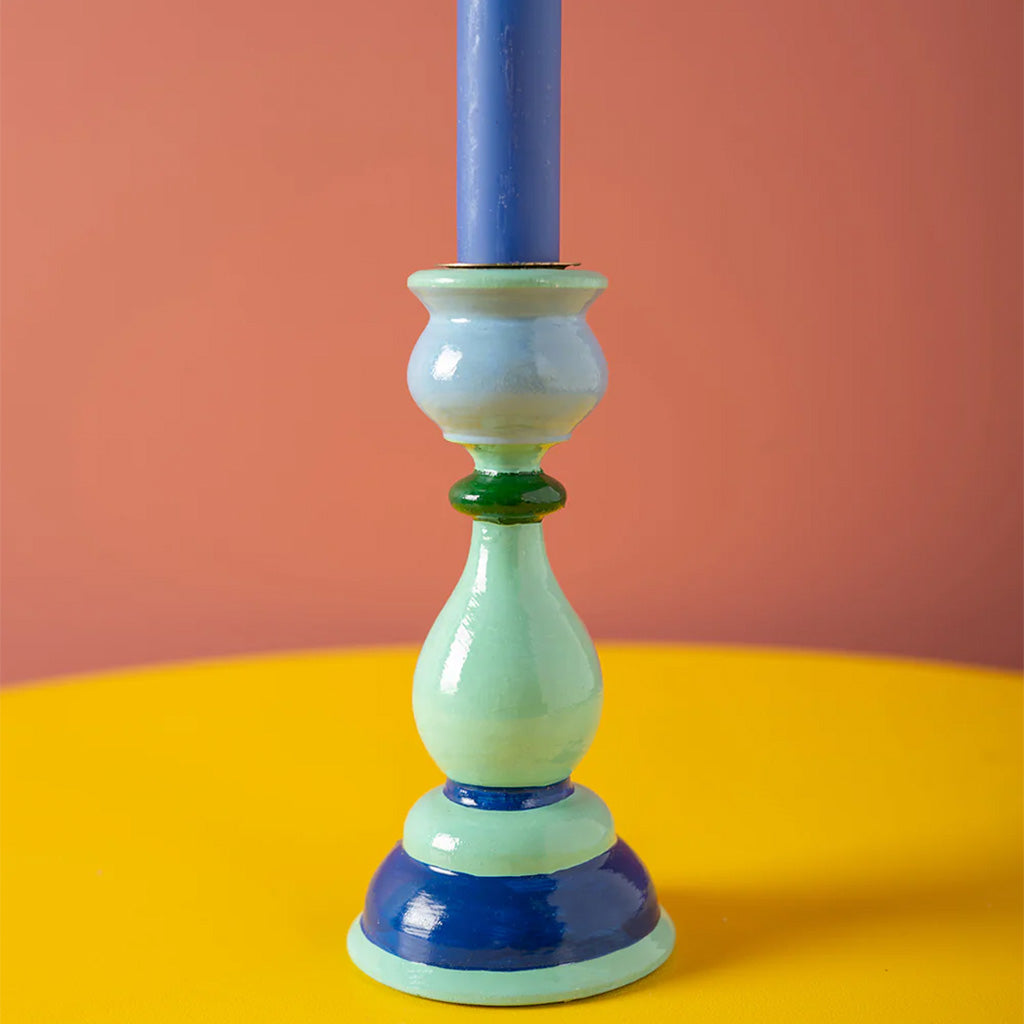 Beautifully hand painted in a parade of colours, its superb curvy, fluid shape creates an effortlessly elegant candle holder, fit for any table and any occasion