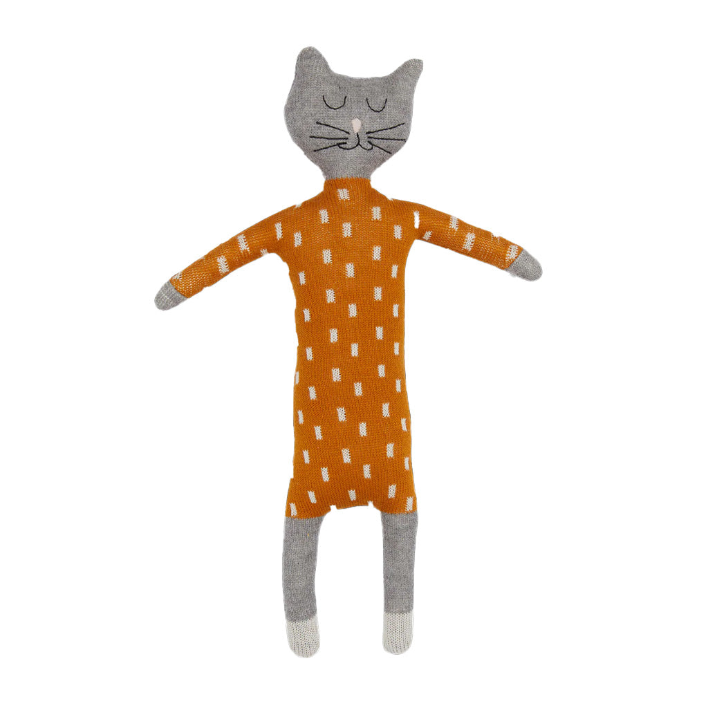 Adults and children alike fall for the charms of this cotton knit cat soft toy. With bendy, grabbable arms and legs, and a characterful hand-embroidered face it's easy to see why!