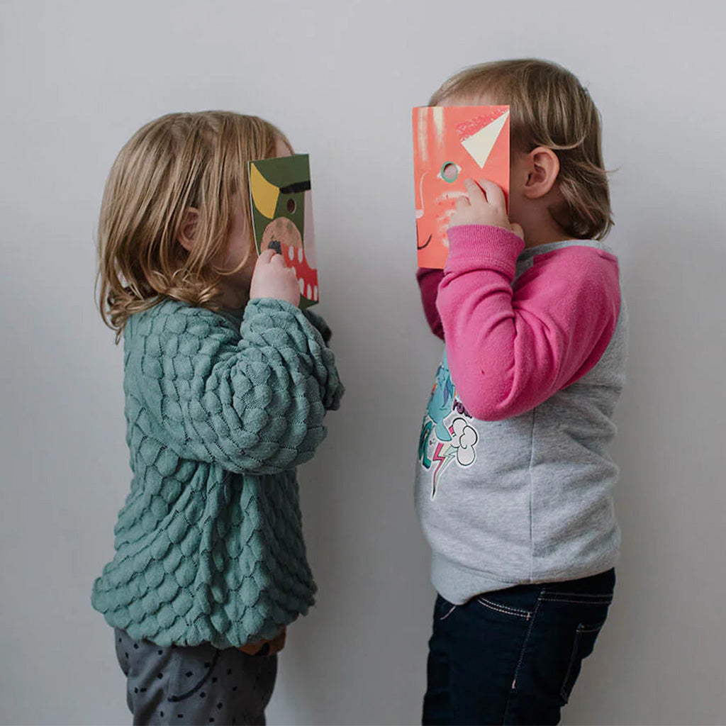 The joyous greeting card transforms in to a mask that features cut-out eye holes