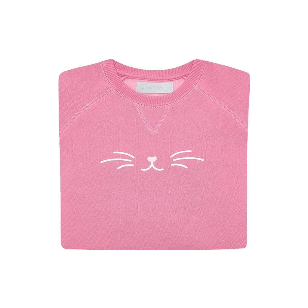 A super soft, heavy cotton sweatshirt with a relaxed fit, in rose pink with a white 'CAT' face print