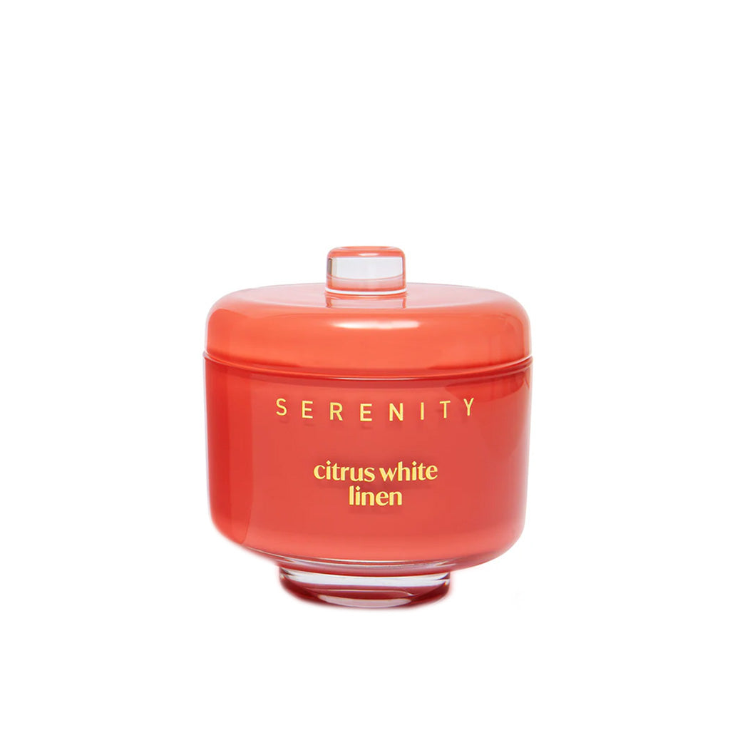 This luxury, two-wick candle features a coloured glass vessel and lid, which add a touch of sophistication to any setting