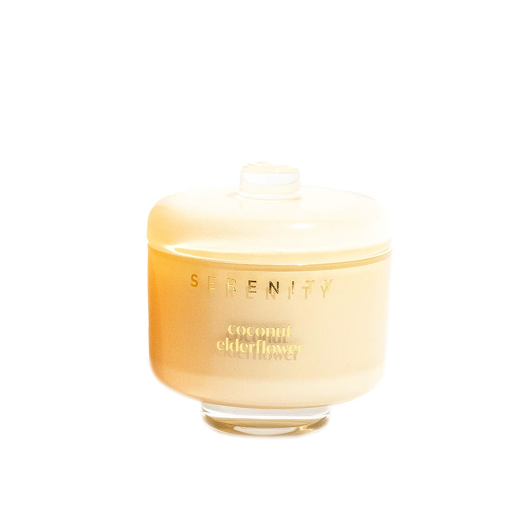 This luxury, two-wick candle features a coloured glass vessel and lid, which add a touch of sophistication to any setting