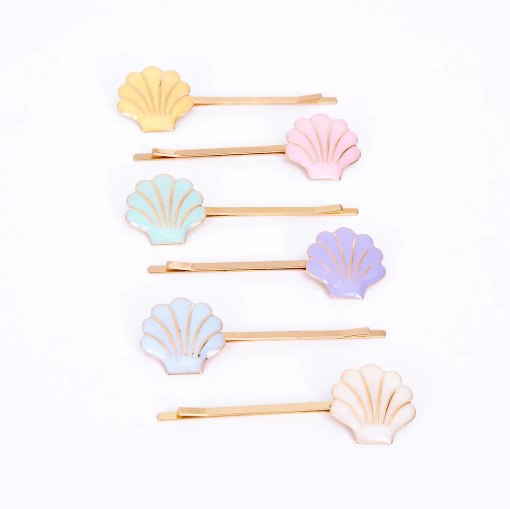 Make your hair look mermaid pretty with this beautiful set of hair slides. They feature beautiful shells crafted from enamel, with gold tone slides