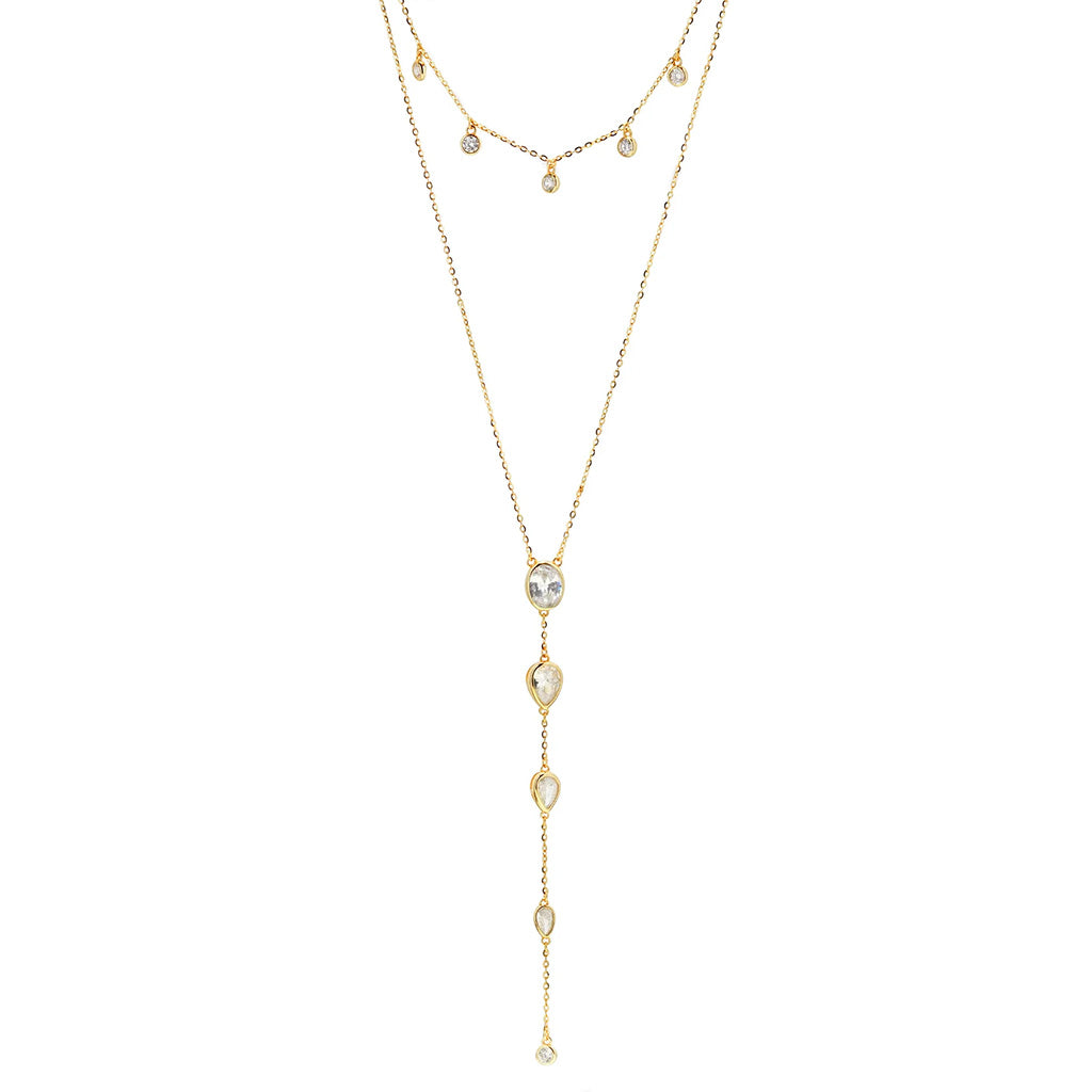 Double the layers, double the sparkle! The LARIAT layered teardrop necklace is all about effortless elegance with a little extra shine. Crafted from 18k gold-plated 925 sterling silver, its dripping in golden goodness, making it perfect for adding a luxe touch to any outfit