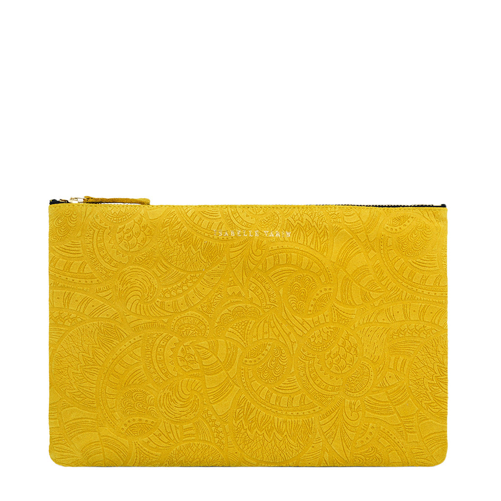 Unlined, leather pouch in lemon