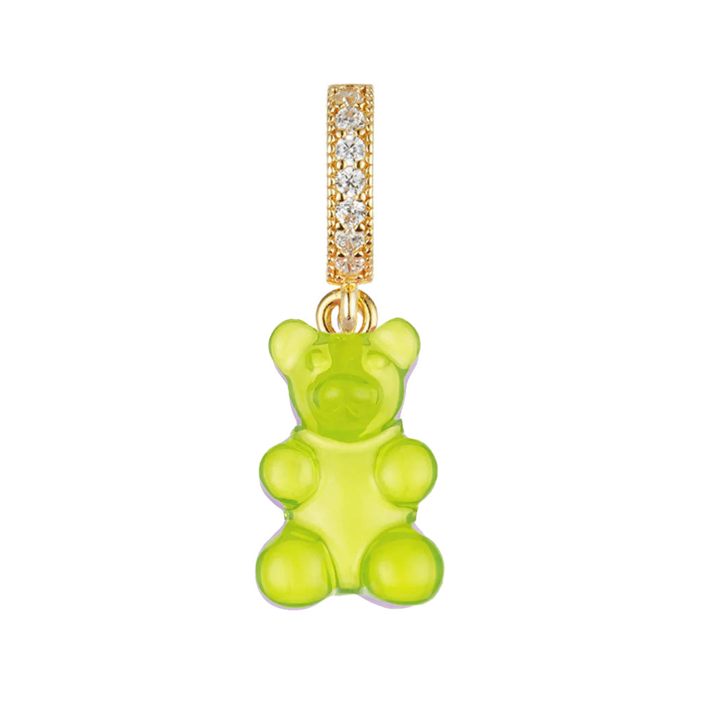NOSTALGIA BEAR pendant in 'lime' coloured resin with 18k gold plated and cubic zirconia pave connector