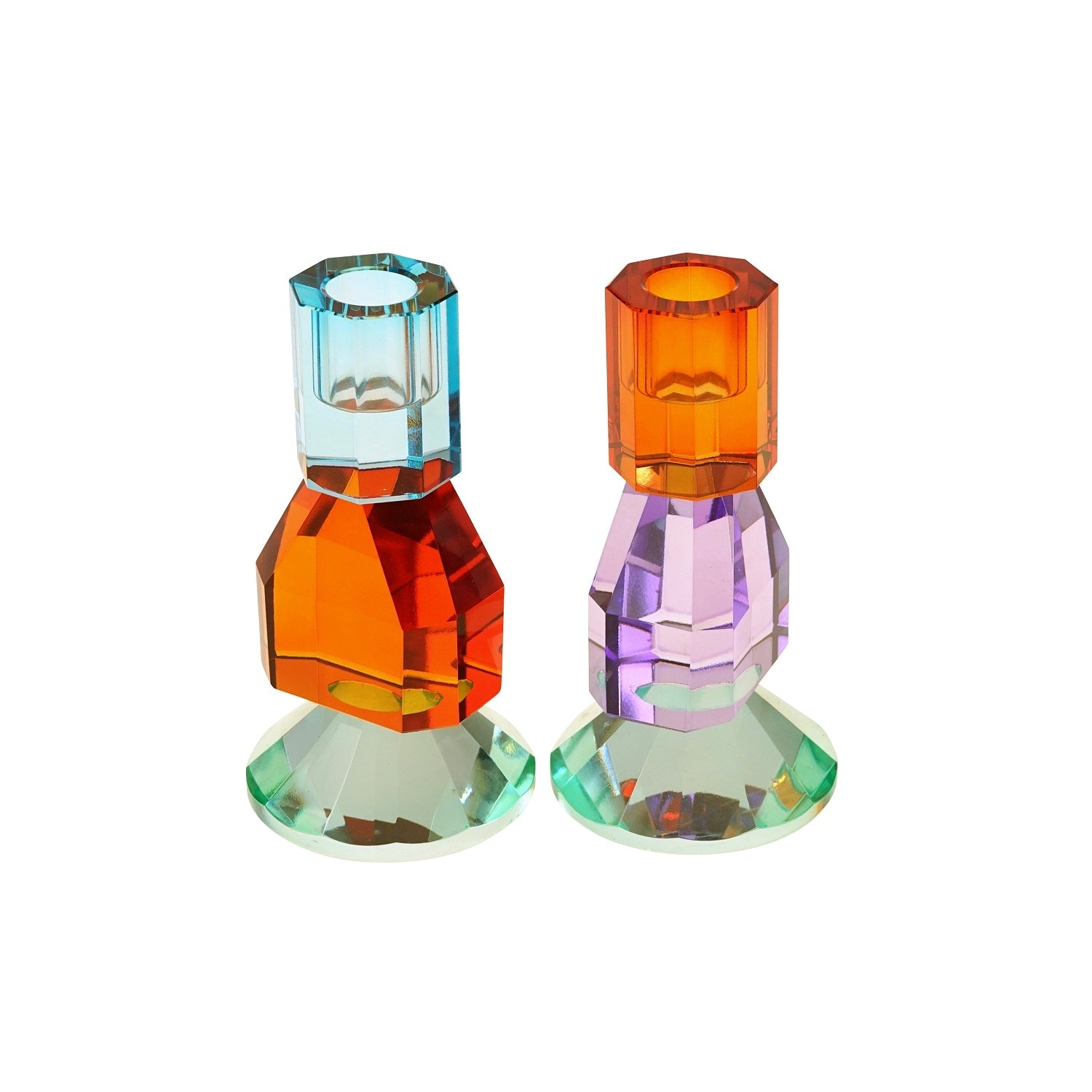 Set of two, coloured glass candle holders