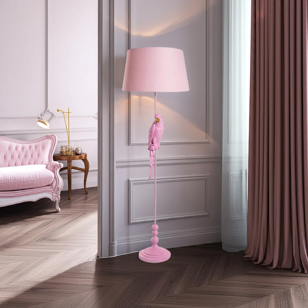 Its matte pink finish and charming parrot detail add a unique, artistic touch to any room, while the matching pink shade provides soft, ambient lighting. Ideal for enhancing contemporary interiors, this floor lamp offers both style and functional illumination, making it a sophisticated choice for those seeking distinctive décor elements