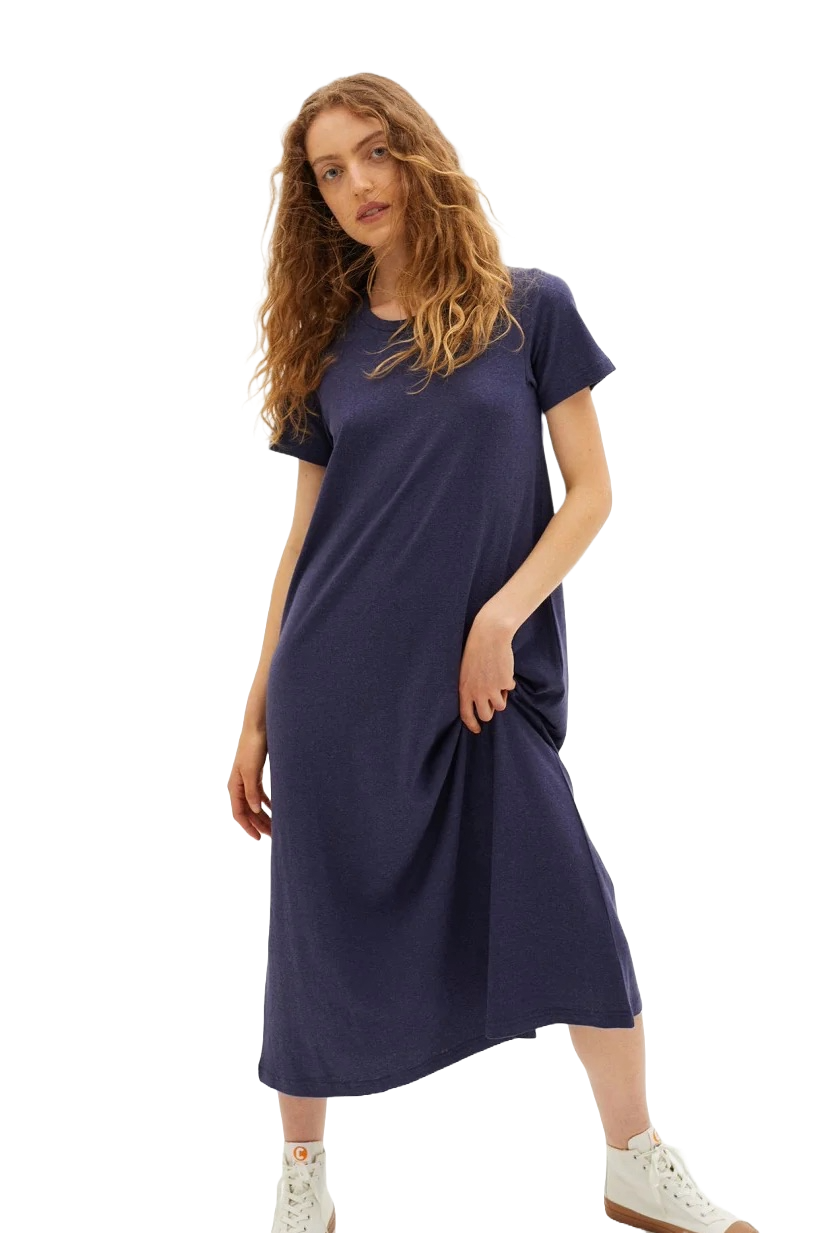 Navy Hemp Oueme Dress - S is backordered and will ship as soon as it is back in stock.
