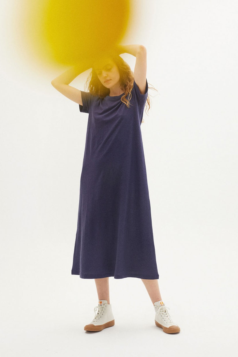 Long dress with a round neckline and short sleeves, made from hemp and organic cottonCertified organicFairtrade