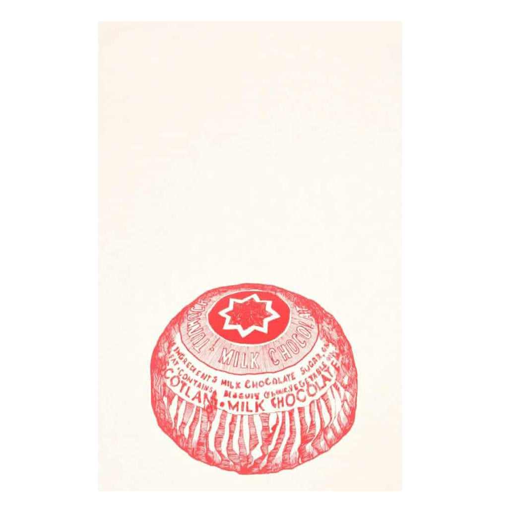 This Tunnocks Teacake tea towel design celebrates the famous Scottish tea time treat made in Uddingston, just outside of Glasgow, since 1956